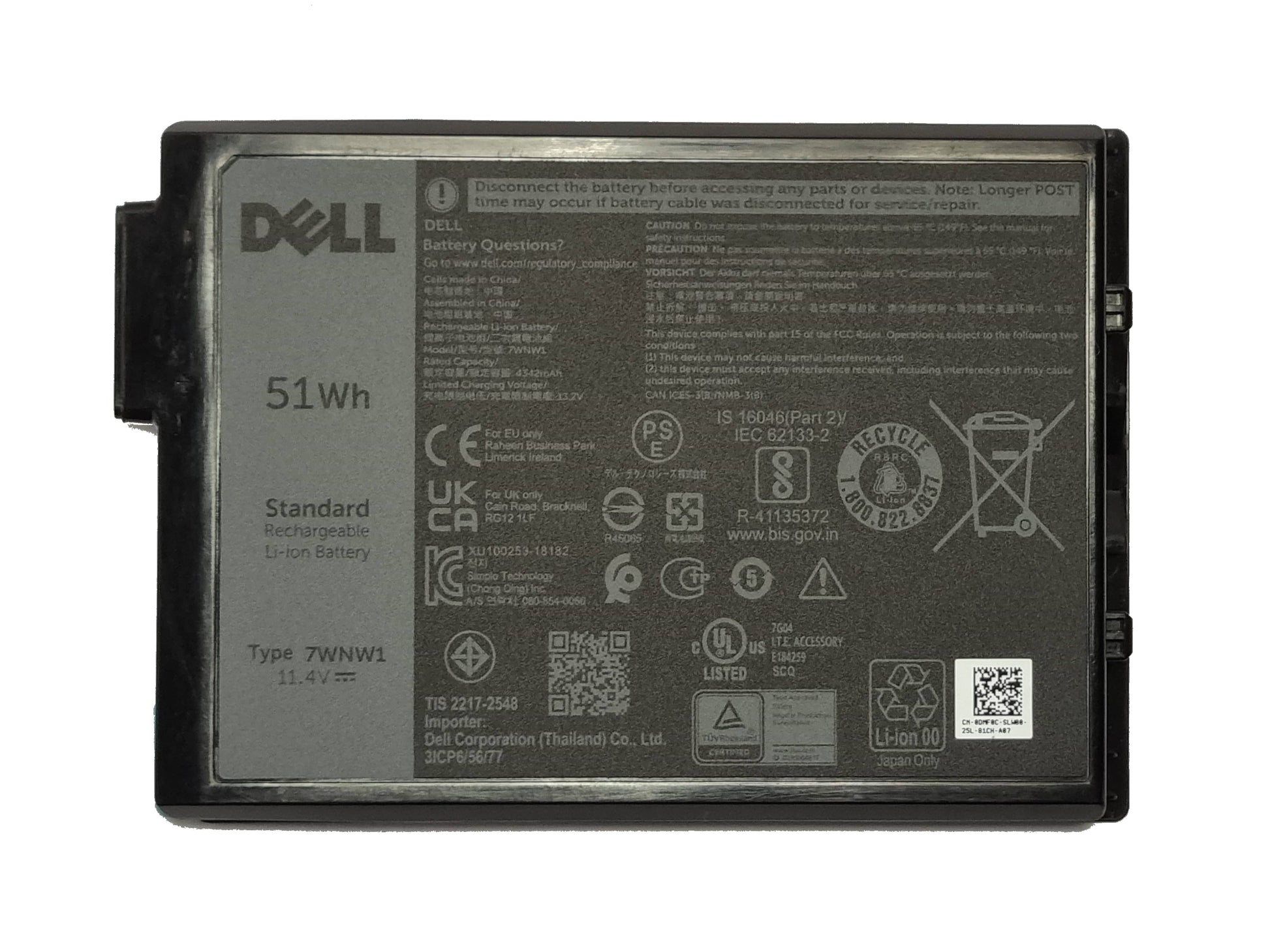 Dell Latitude Rugged 5420 5424 7424 4 Cell 51Wh Laptop Battery 7WNW1 DM0FC